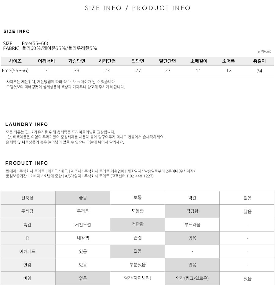 S(55),M(66),FREE 사이즈 외에는