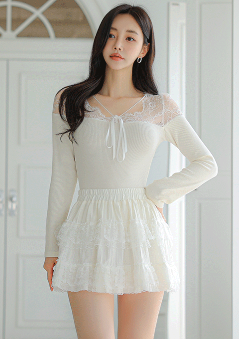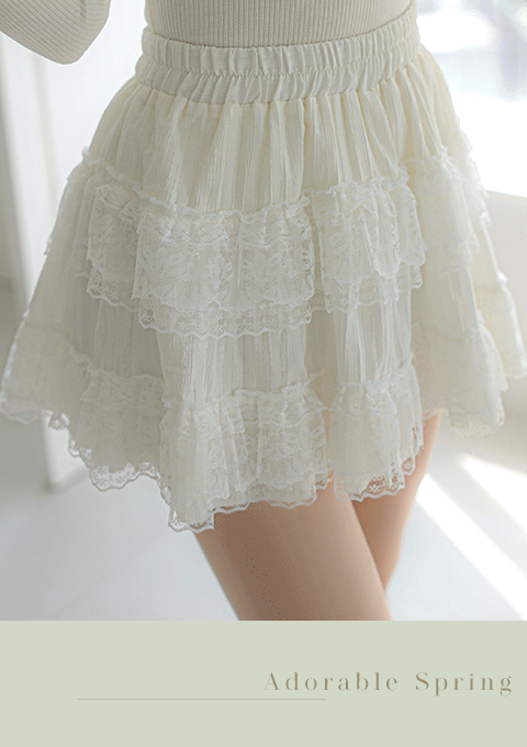 크림 캉캉 스커트