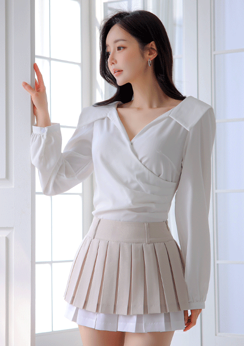 무타 숄 주름 스커트