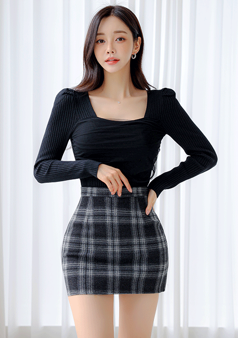 드미 체크 스커트