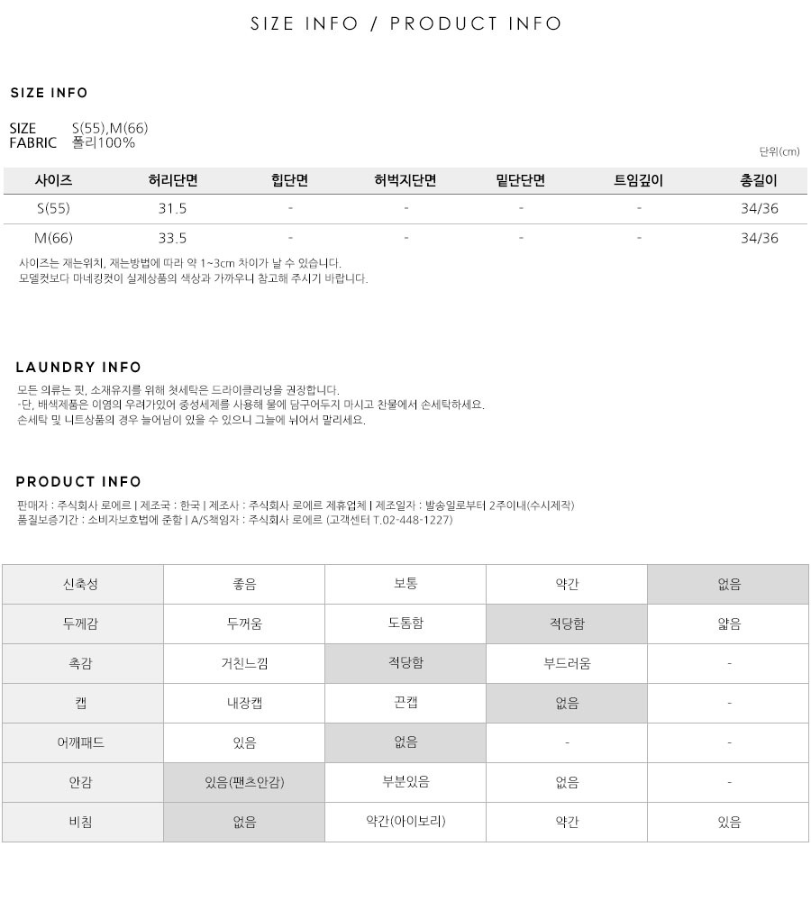 S(55),M(66),FREE 사이즈 외에는