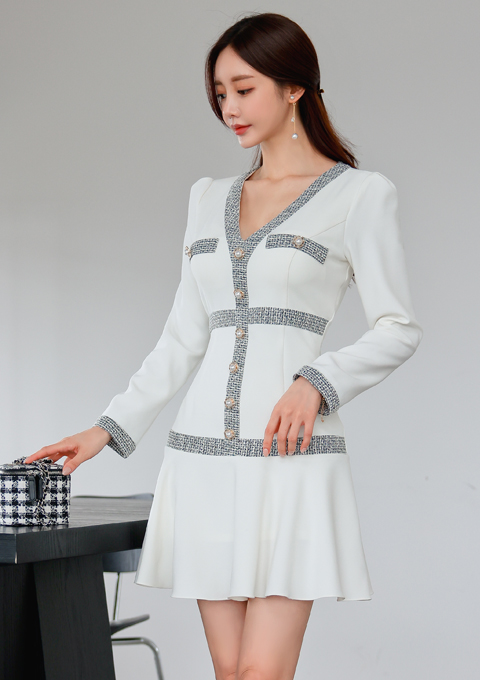 트론 배색 원피스