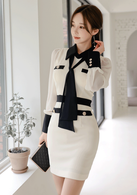 모다 배색 원피스 *허리끈세트* (세일상품)