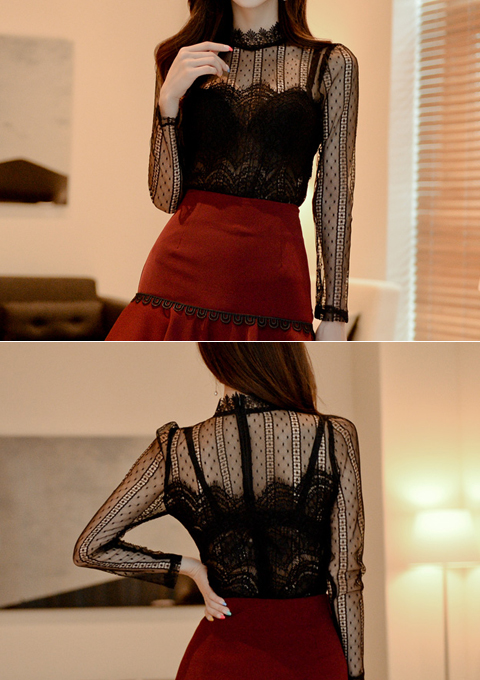 업 레이스 블라우스
