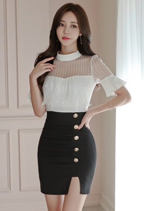 스팽글 레이스 스커트