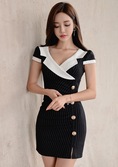 배색원피스