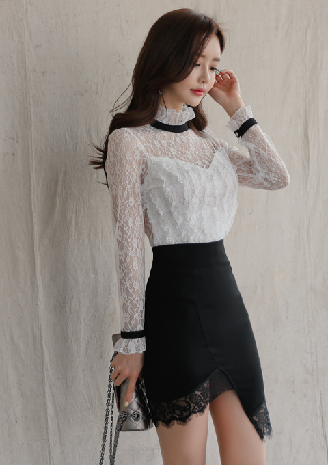 바이어스 망사 블라우스