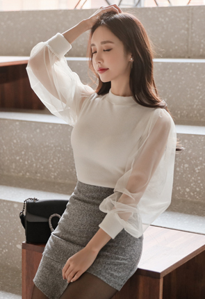 망사 퍼프 티셔츠