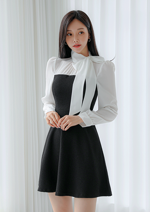 누에보 배색 원피스