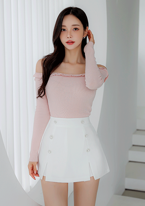 멜랑 긴팔 배색 니트 *브로치 세트*