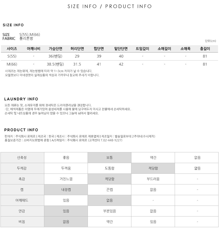 S(55),M(66),FREE 사이즈 외에는