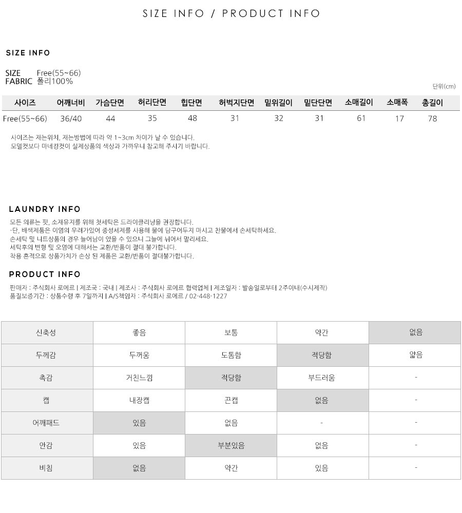 S(55),M(66),FREE 사이즈 외에는