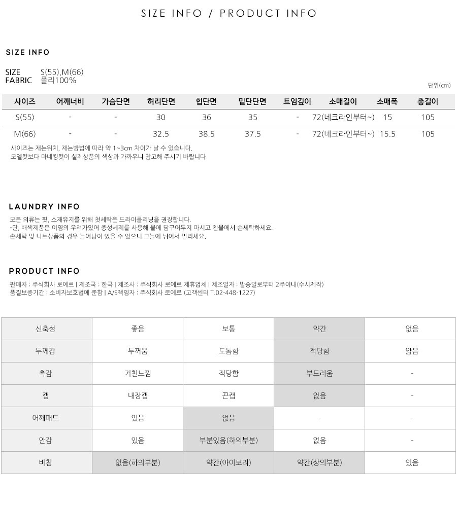 S(55),M(66),FREE 사이즈 외에는