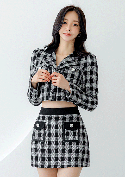 델브 체크 자켓