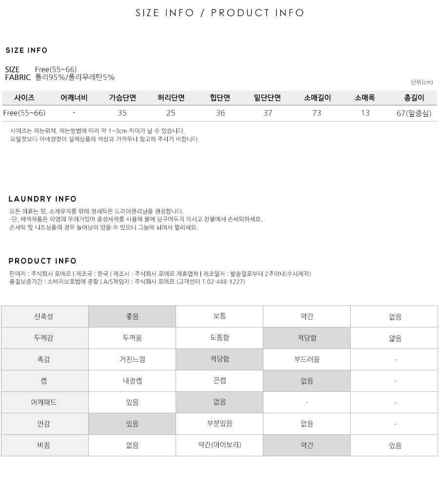 S(55),M(66),FREE 사이즈 외에는