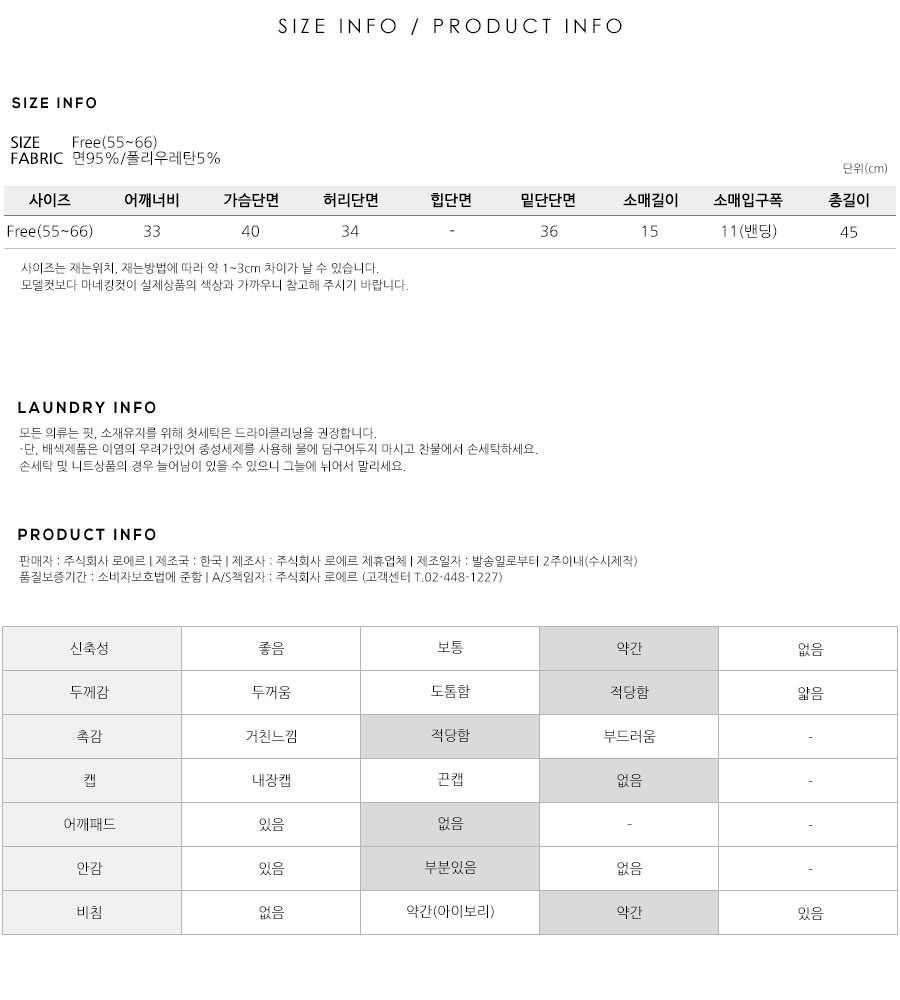 S(55),M(66),FREE 사이즈 외에는