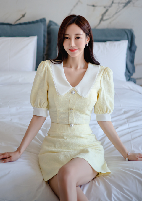착용컬러: 옐로우 / 착용사이즈: S / 투피스세트