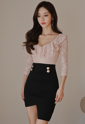 스팽글 레이스 스커트