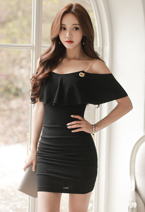 골드 오프숄더 원피스