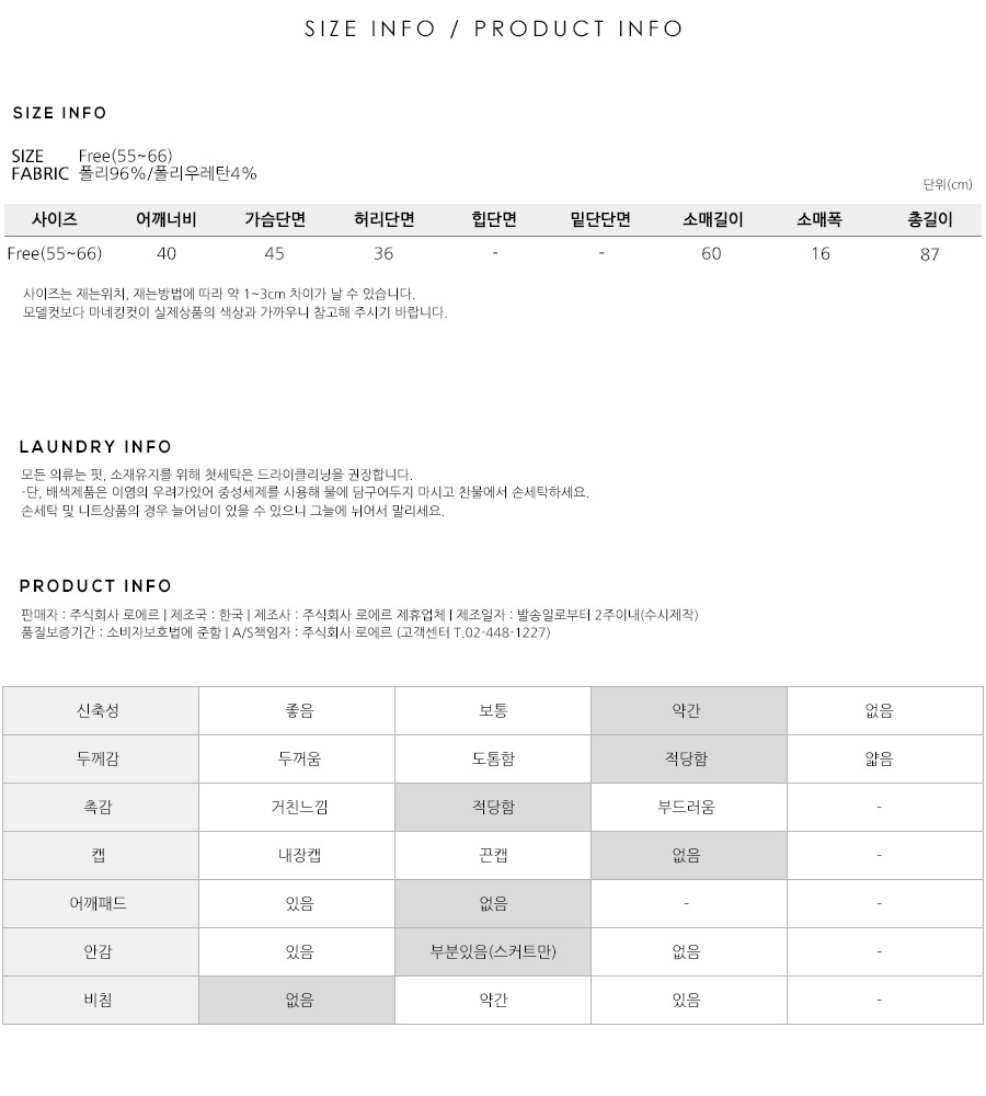 S(55),M(66),FREE 사이즈 외에는