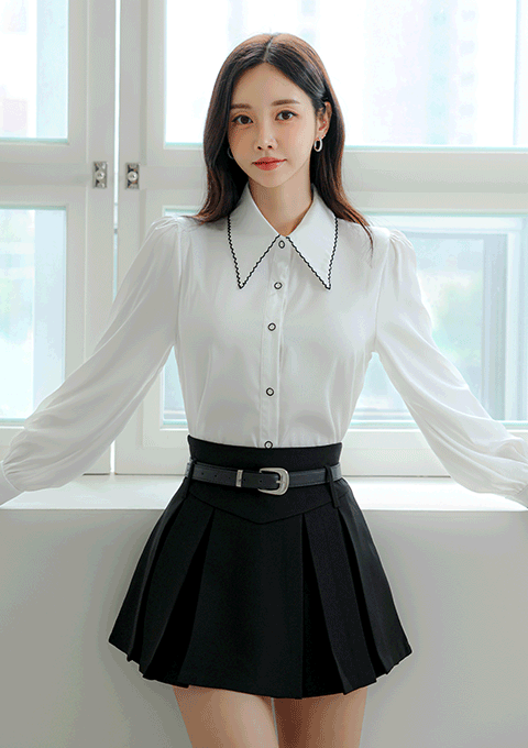 물결 카라 블라우스 *코사지 세트*