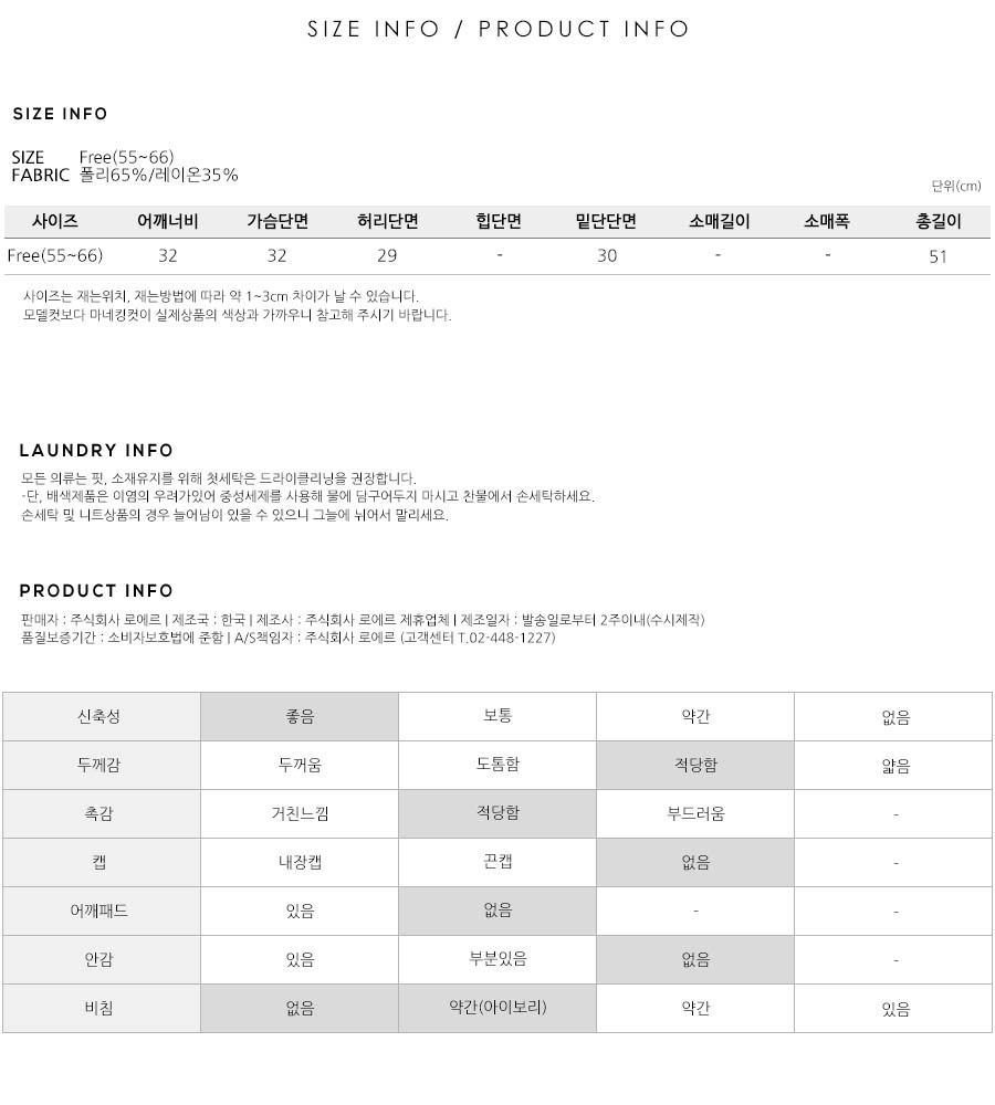 S(55),M(66),FREE 사이즈 외에는