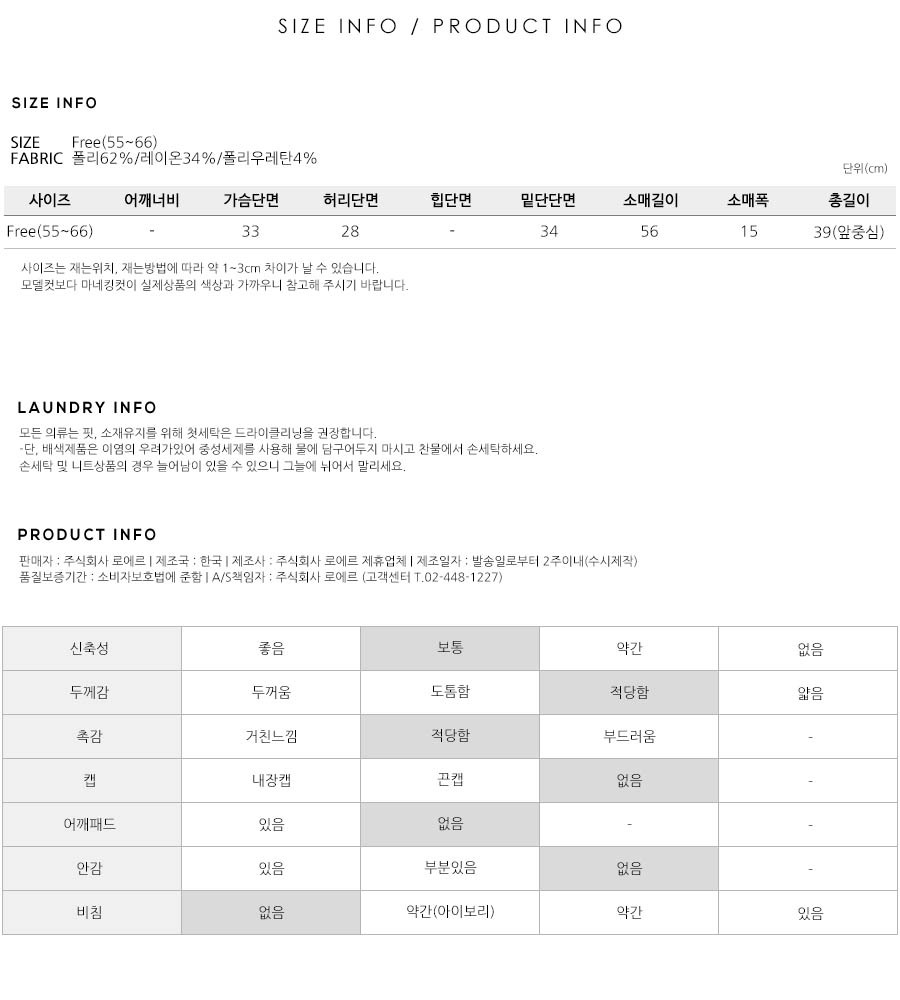 S(55),M(66),FREE 사이즈 외에는