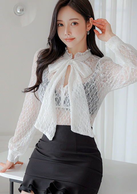 아델린 시스루 블라우스 *타이세트*
