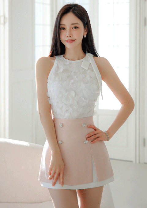 피오네 홀터 블라우스 *브로치세트*