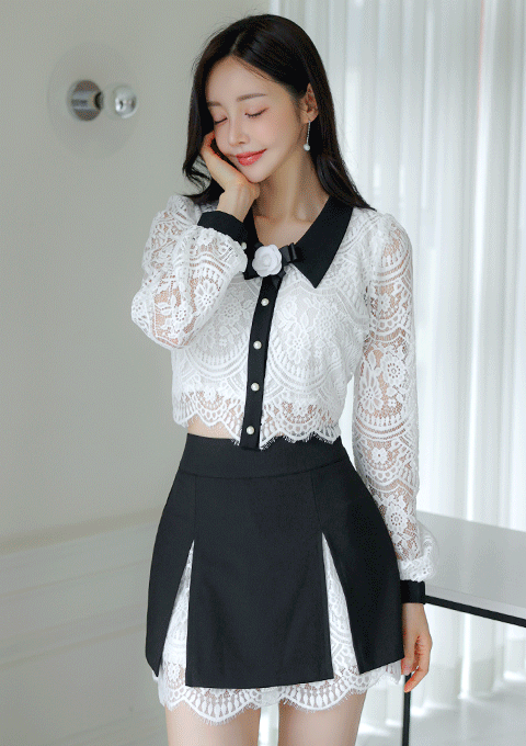 로니크 레이스 블라우스 *브로치세트*