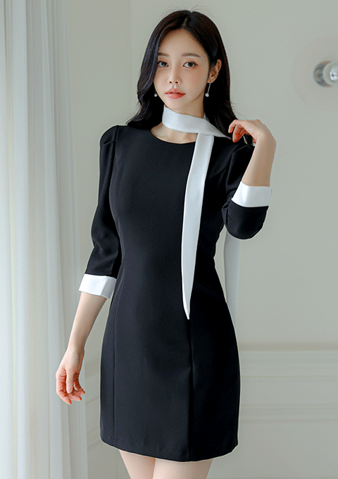도로시 배색 원피스 *브로치세트*