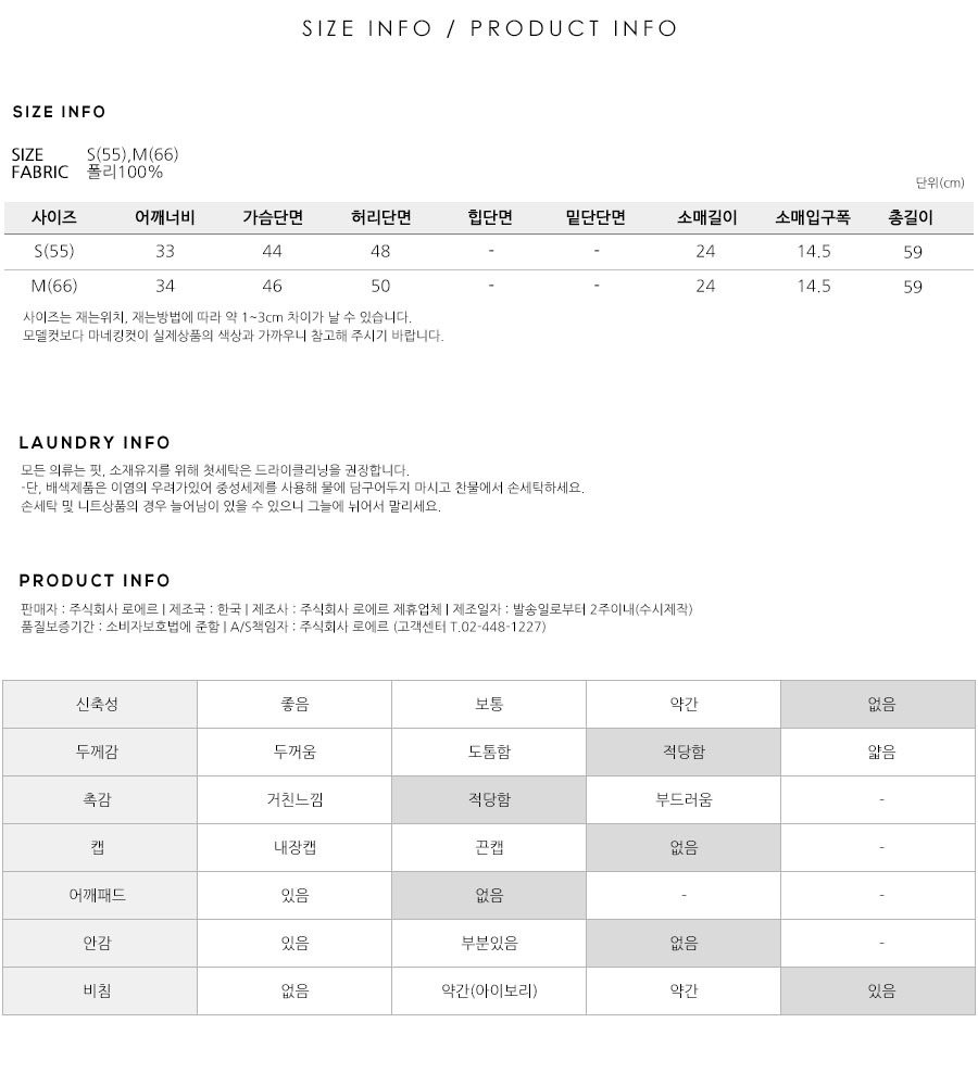 S(55),M(66),FREE 사이즈 외에는