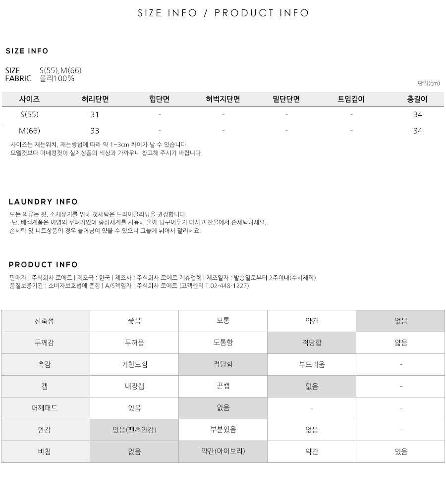 S(55),M(66),FREE 사이즈 외에는