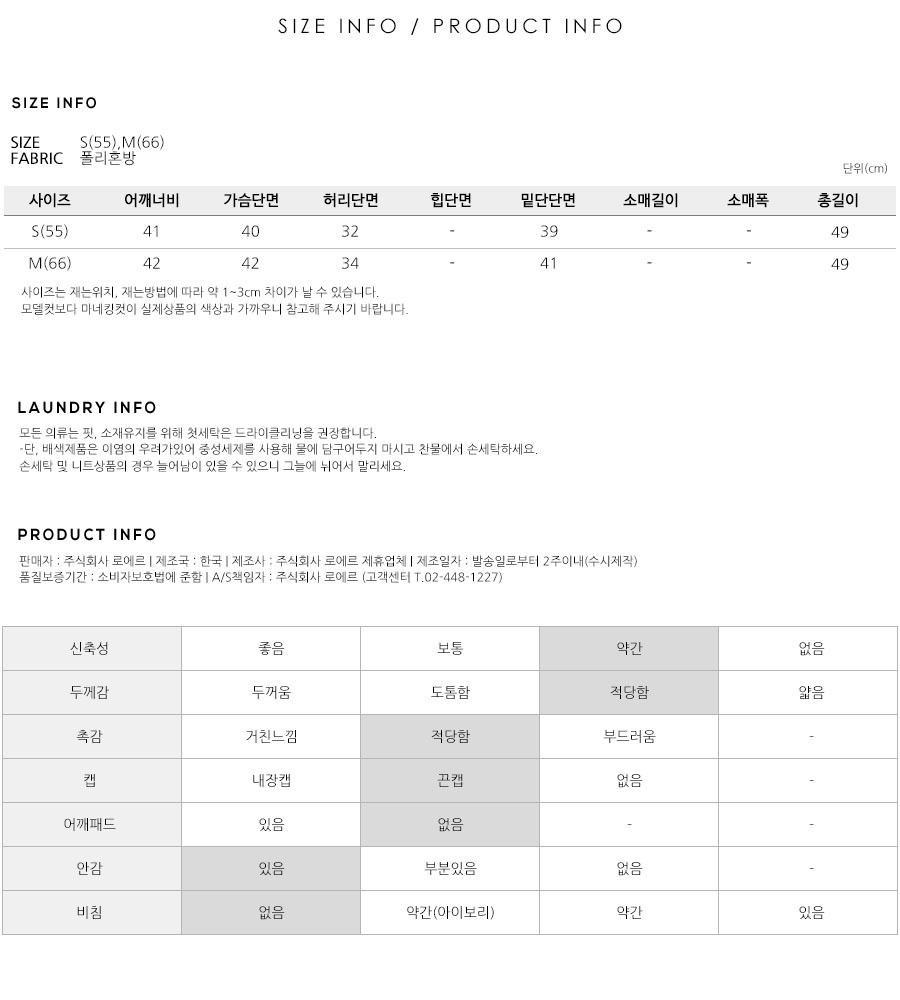 S(55),M(66),FREE 사이즈 외에는