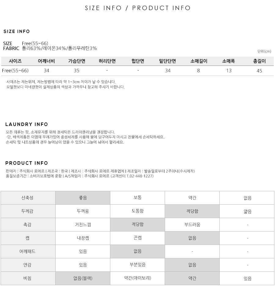 세탁 부주의로 인해 상품이 훼손된 경우 교환/환불의 사유가 될 수 없으며 저희는 그 어떠한 책임도 지지 않습니다.