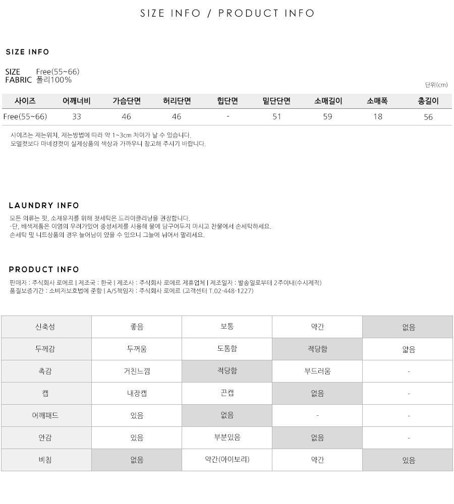S(55),M(66),FREE 사이즈 외에는
