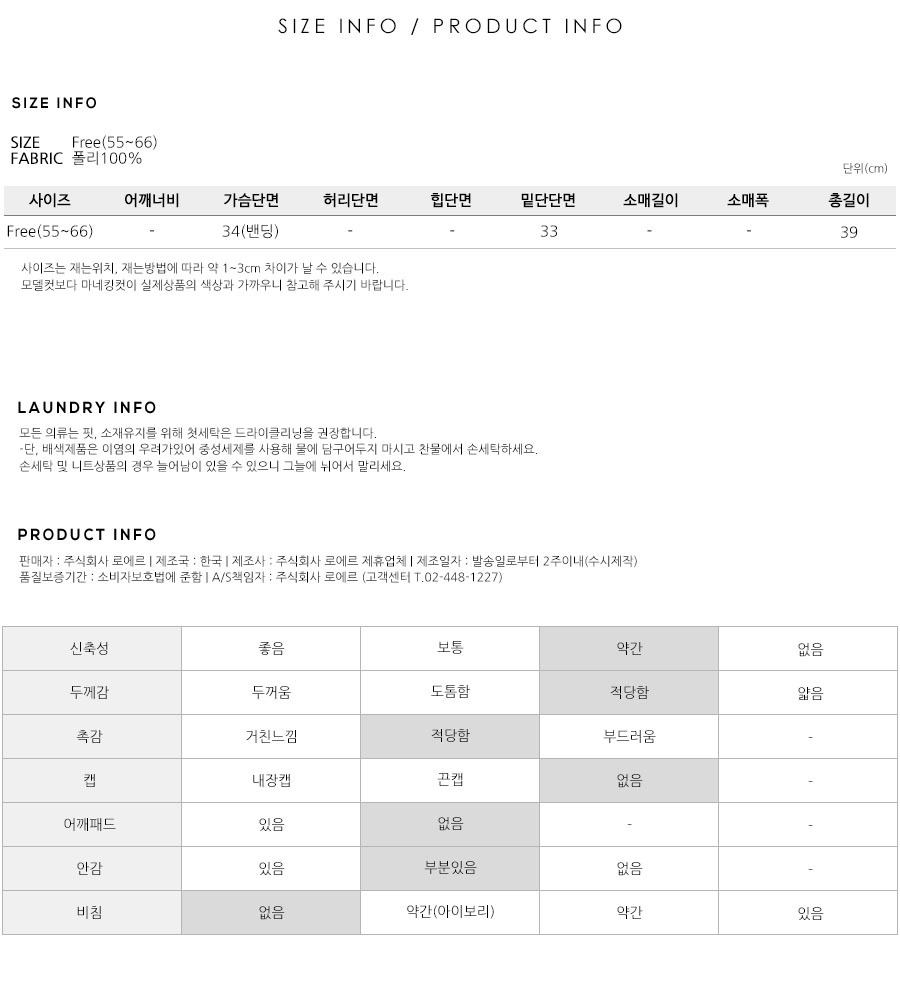 S(55),M(66),FREE 사이즈 외에는