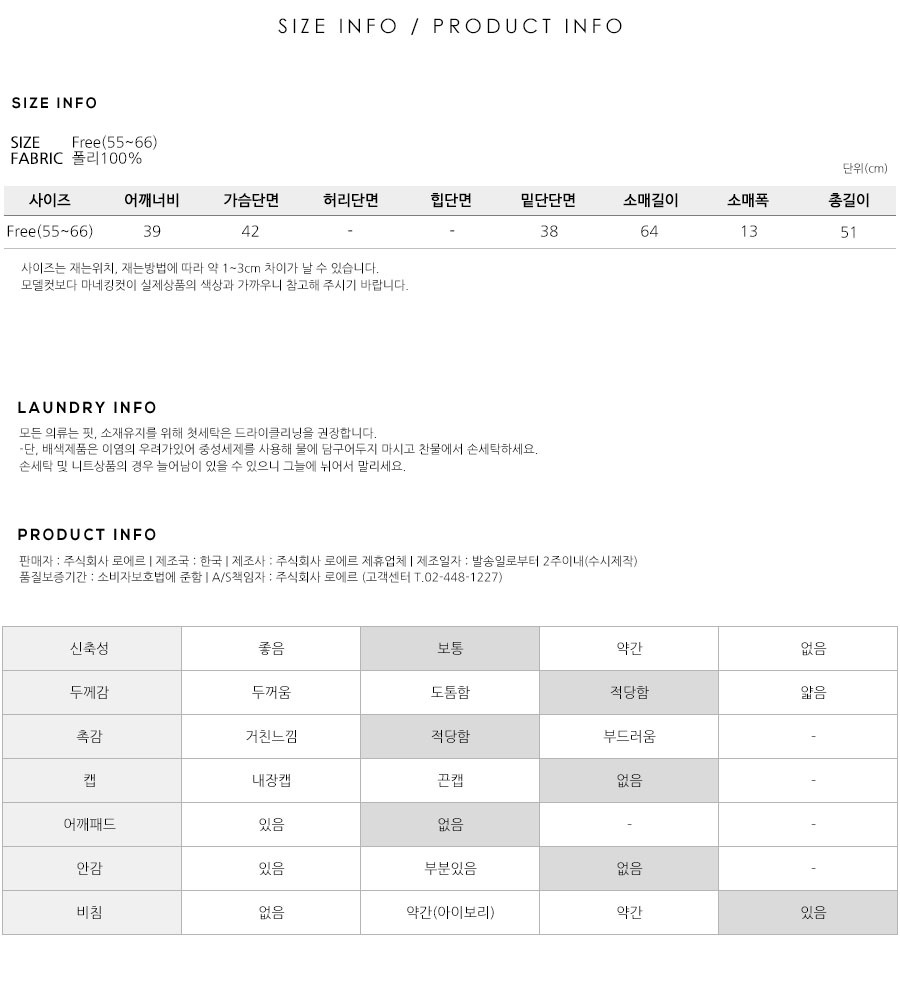 S(55),M(66),FREE 사이즈 외에는