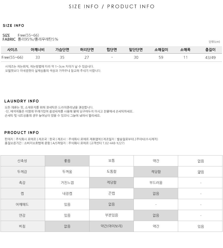 S(55),M(66),FREE 사이즈 외에는