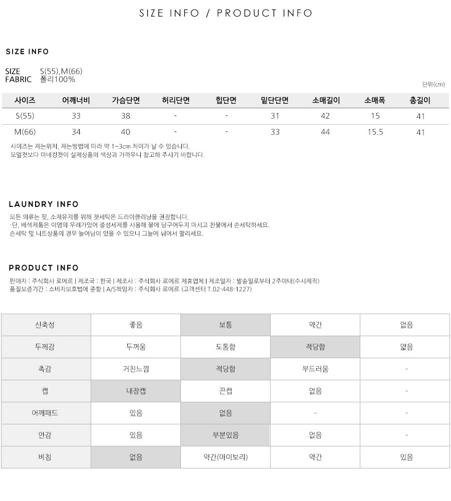 S(55),M(66),FREE 사이즈 외에는