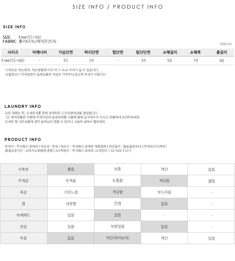 S(55),M(66),FREE 사이즈 외에는