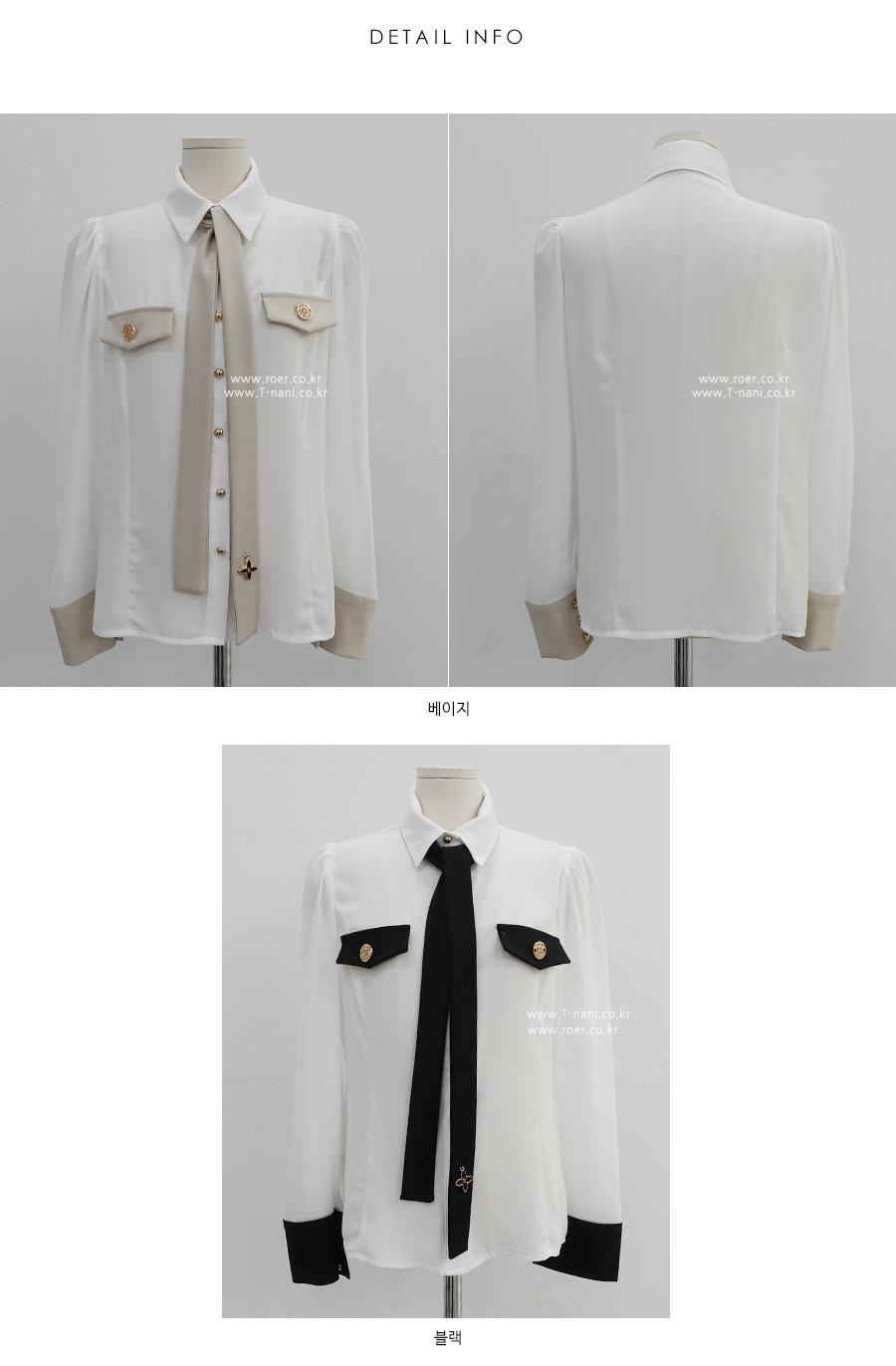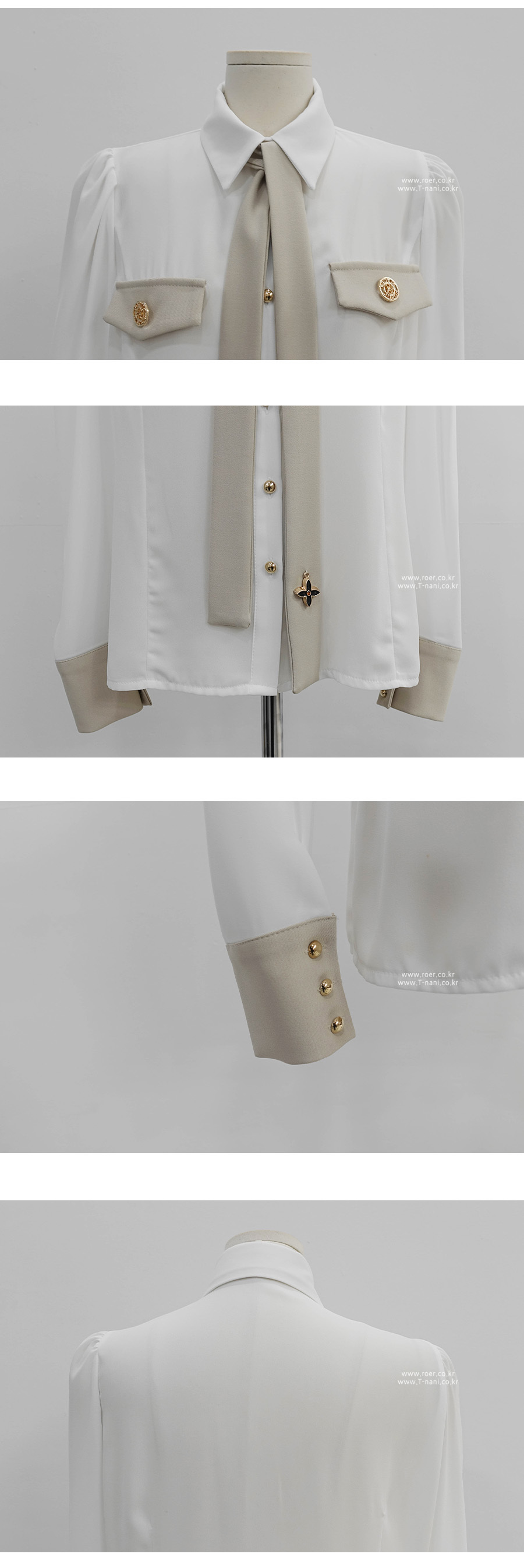 에뷰 배색 블라우스 *타이세트*