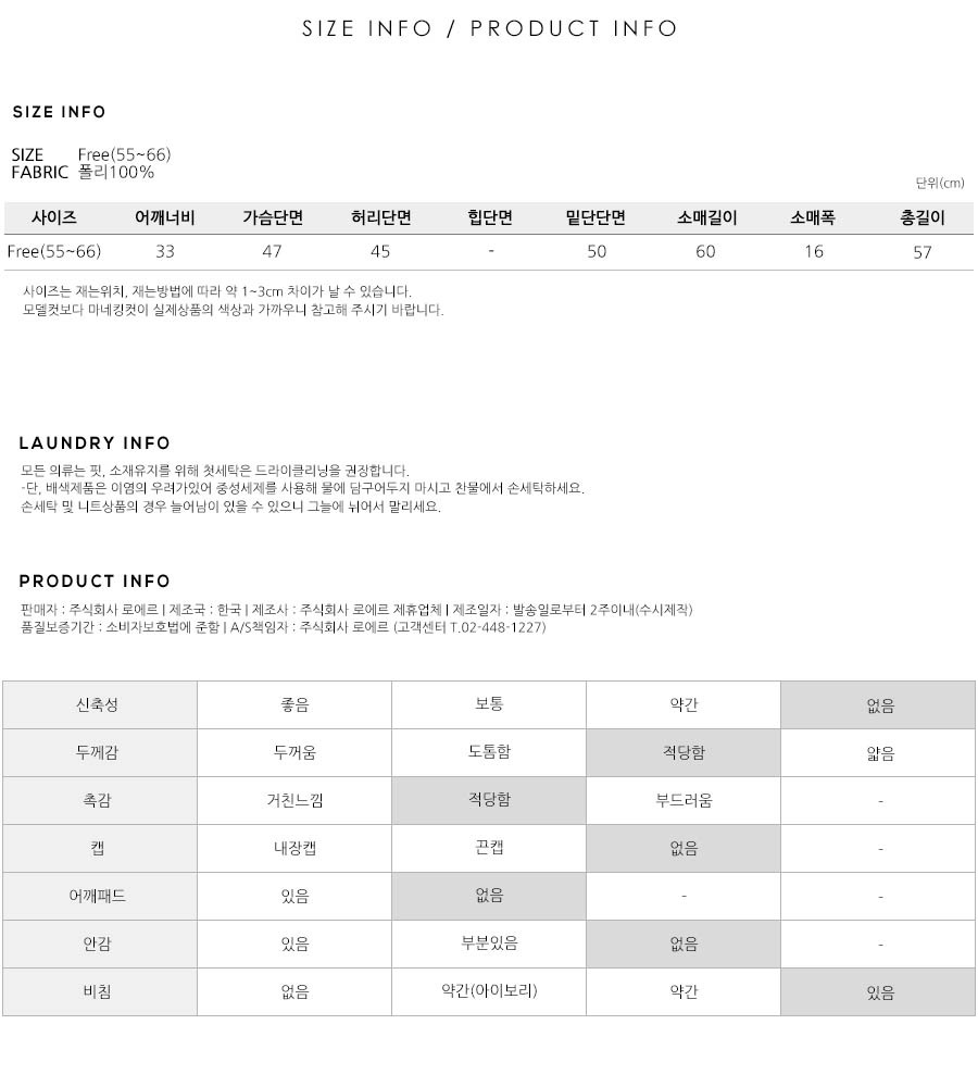 S(55),M(66),FREE 사이즈 외에는