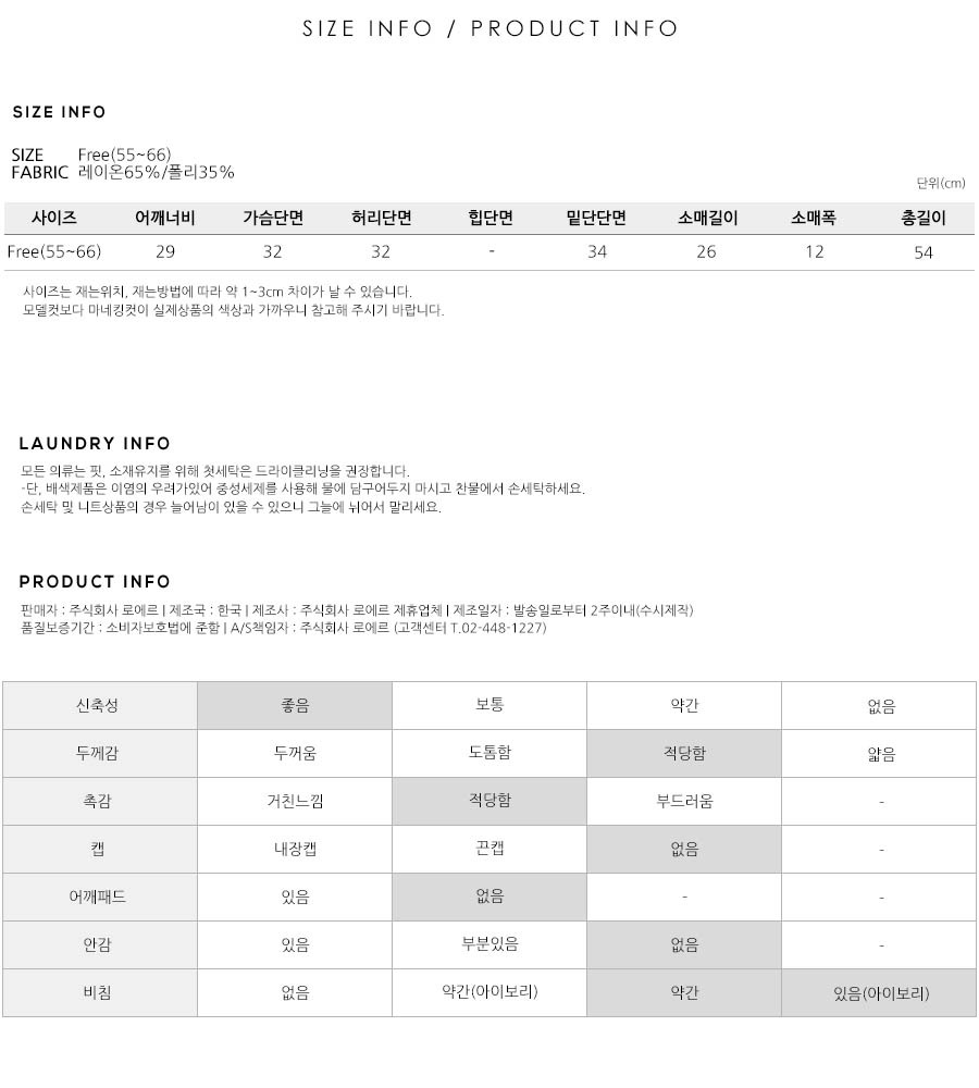 S(55),M(66),FREE 사이즈 외에는