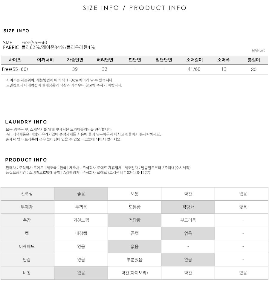 S(55),M(66),FREE 사이즈 외에는